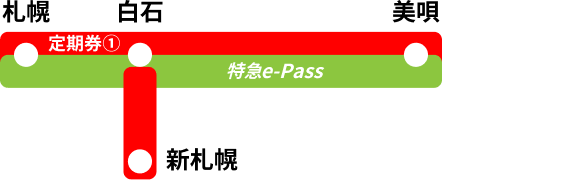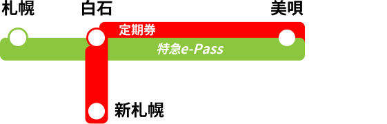新札幌〜美唄のみ(白石乗り換え)の定期券では「札幌〜美唄」の特急e-Passをご利用になれません。