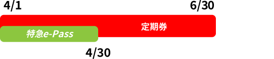 ⑶ご利用開始日は定期券の有効期間内であることが必要です 「特急e-Pass」の有効期間と定期券の有効期間が一致している必要はありませんが、「特急e-Pass」ご利用開始日の時点で有効な定期券をお持ちであることがご購入の条件となります。