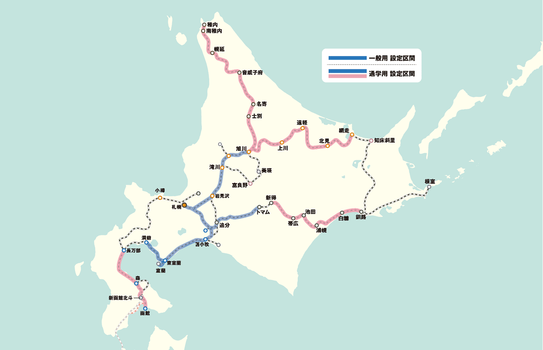 | 旭川方面 | 札幌駅〜旭川駅間の特急停車駅相互間 |